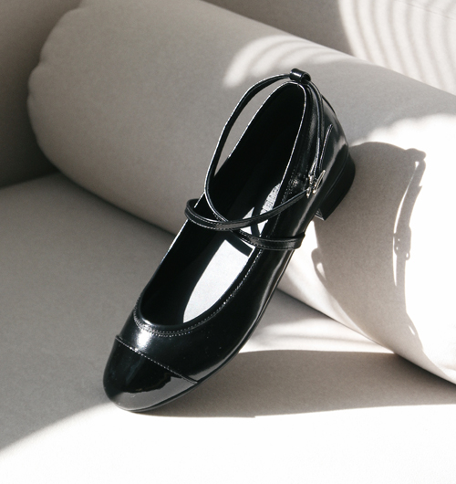 심플한 디자인의 토우캡 x스트랩 플랫슈즈입니다.
