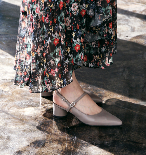 기본라인의 뾰족한 토우라인의 슬링백 슈즈에